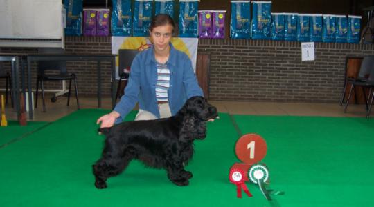 Indertijd gingen we samen met de fokker kijken naar een clubmatch van de SSA (Sporting Spaniel Association). Aangezien ik zelf geen hond bij me had heb ik met een hond van Danielle (Weeping Willows kennel) deelgenomen aan de juniorhandling. Gaandeweg begon ik hem ook steeds meer zelf te trimmen.