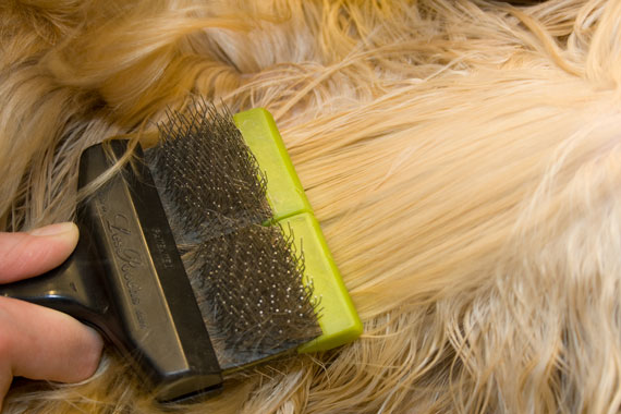 Stap 1 Uw hond wordt in bad nat gemaakt.